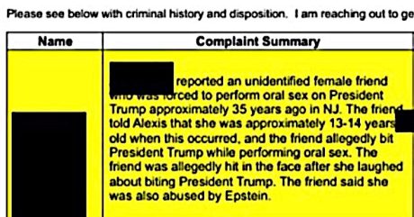 One anecdotal allegation stands out. The second-hand allegation, I mean, about a 14 year-old girl having allegedly “bitten” a40something Donald Trump “while performing oral sex.” She was then allegedly “hit in the face” after laughing about the biting.