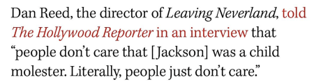 Bill Maher last night (4.24): “New rule: If you complain about Columbus Day because it ignores the fact he killed Indians, and you complain about Presidents’ Day because it ignores the fact that Washington owned slaves, then you can’t happily go see a movie where Michael Jackson doesn’t sleep with kids. Which is the movie that’s out now, where we just hear about the fun things Michael did. It’s playing on a double bill with Jeffrey Epstein: Superhost Extraordinaire and John Wayne Gacy: Thanks for the Laughter.”