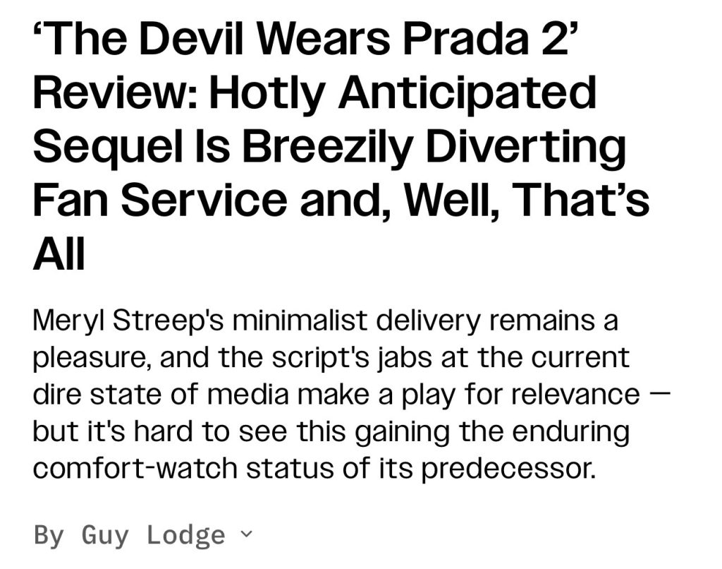 That tweeted suggestion that The Devil Wears Prada 2, arriving 20 years after the original…calling it The Devil Still Wears Prada would have been brilliant.
